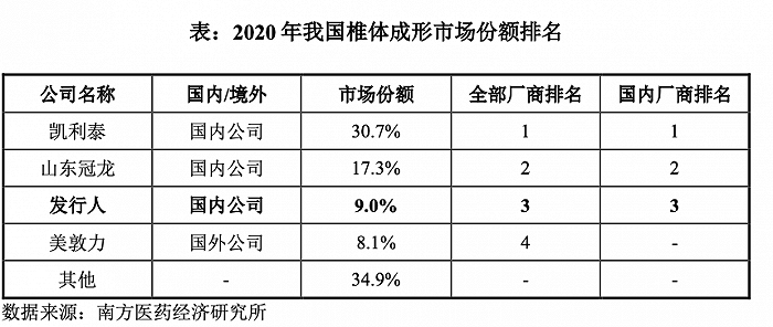 招股书显示,公司将自身归类于第二梯队,可比公司包括综合型企业威高骨科、大博医疗,细分龙头企业凯利泰、三友医疗、春立医疗等。