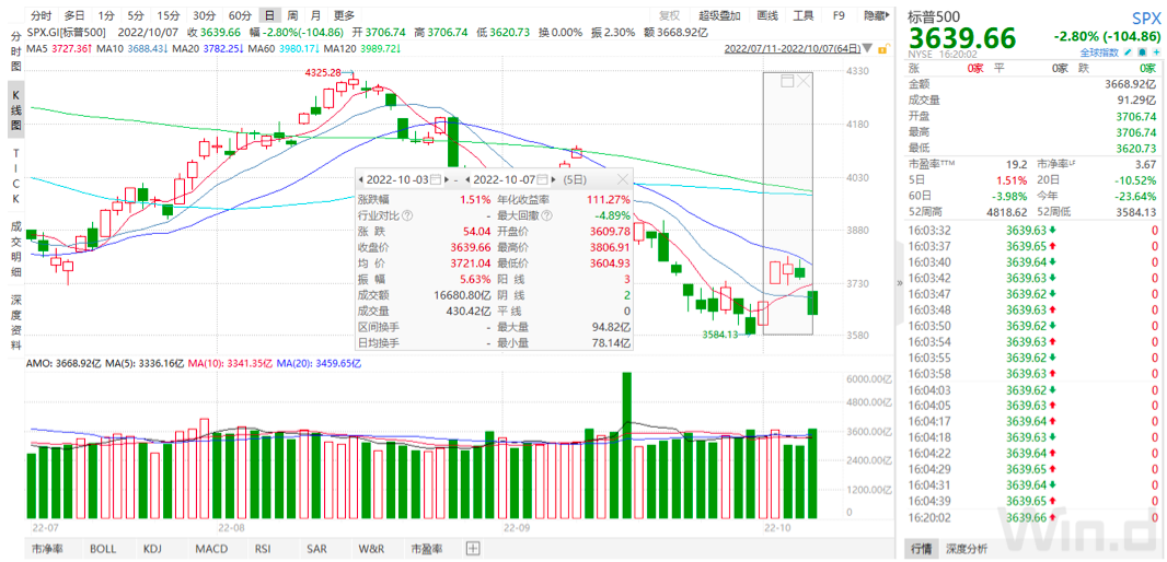 假期海外股市过山车,先是10月3日上周一发布的9月美国ISM制造业指数,从前值的58跌至2020年5月以来最低的50.低于预测中值的5市场解读为美国经济压力上升、物价压力缓解,美股先在10月3日、4日连续大涨。