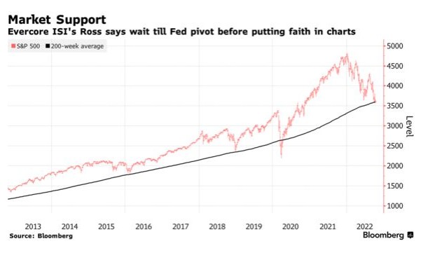 在一个接一个的支撑位上让步后,市场现在降到了另一个关键的阈值:过去200周的平均价格。这一趋势线阻止了标普500指数在2018年和2016年的下跌,也标志着道琼斯工业平均指数的低谷时期。