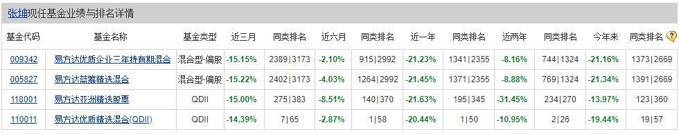 就“公募一哥”张坤而言,其产品业绩表现远远没有外界说得那么“不堪”。